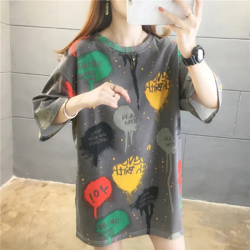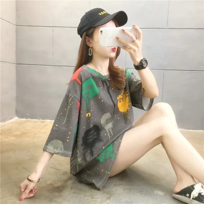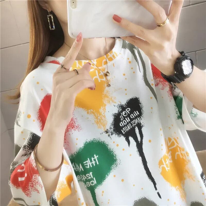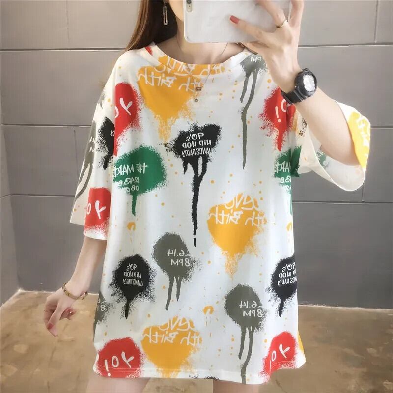 夏レタープリント半袖白 Tシャツ韓国グラフィック y2k トップロング Tシャツ特大原宿友人 ショート ホワイト ハーフスリーブ かわいい サマー 夏物