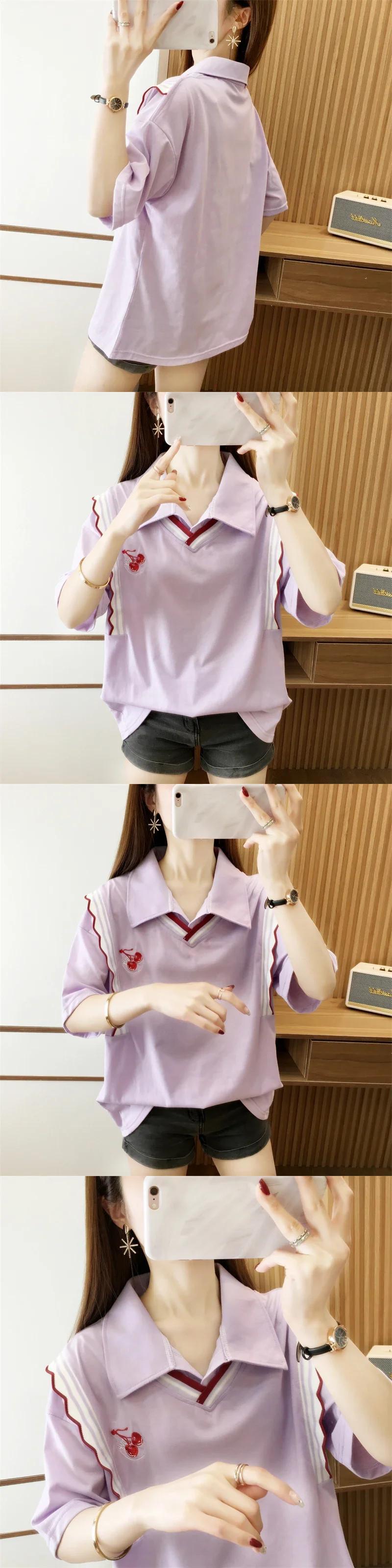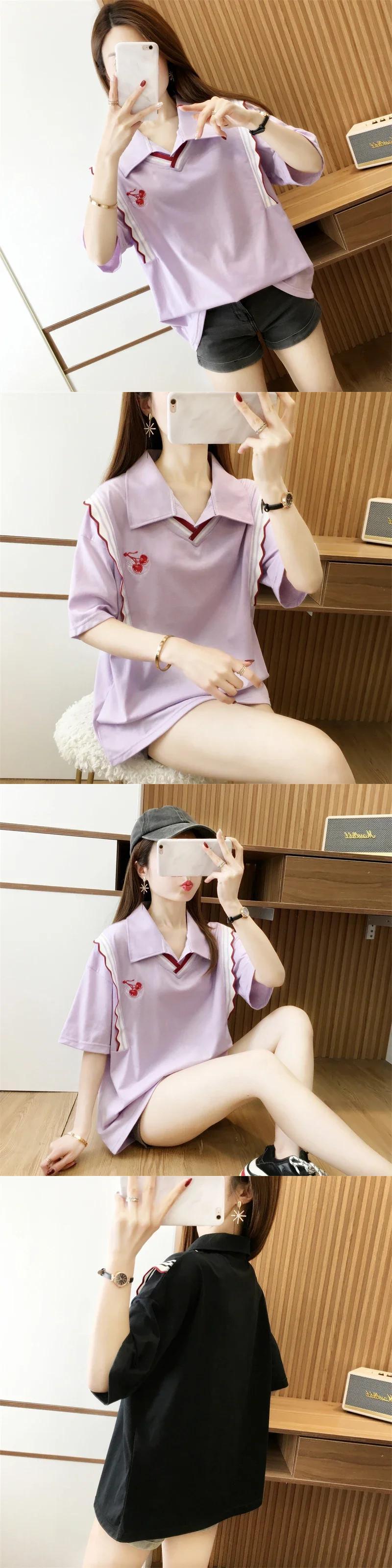 韓国フルーツ刺繍偽二枚 Tシャツ原宿夏綿ルーズ tシャツ半袖ターンダウン襟トップス ショート コットン ハーフスリーブ かわいい サマー 夏物