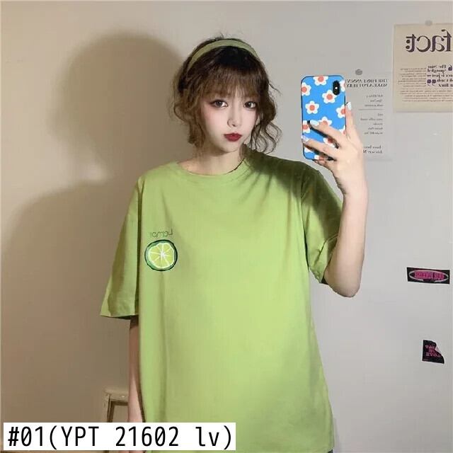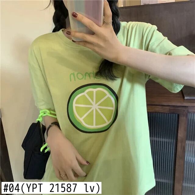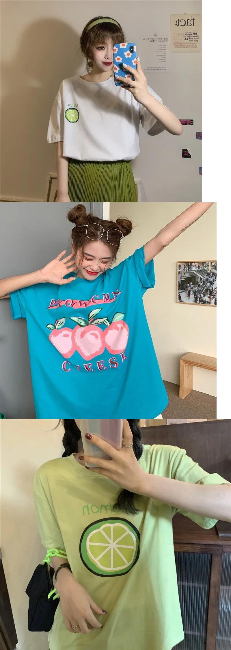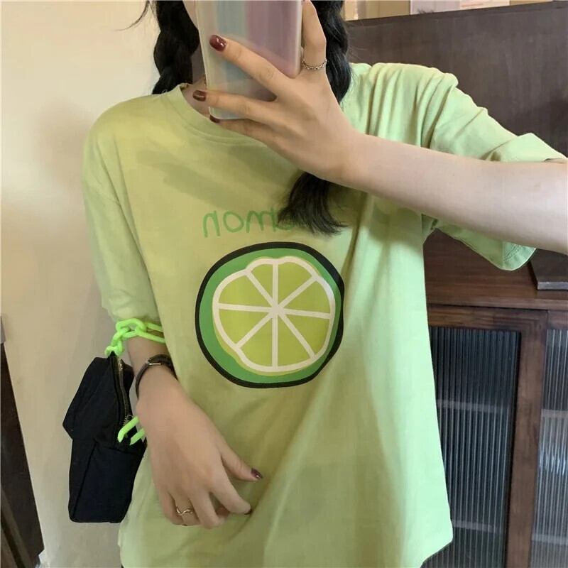 2024 夏カジュアルルーズ Tシャツ韓国スタイルかわいいプリントグラフィックトップスグリーン Tシャツ原宿 tシャツトップ 大人ガーリー サマー 夏物