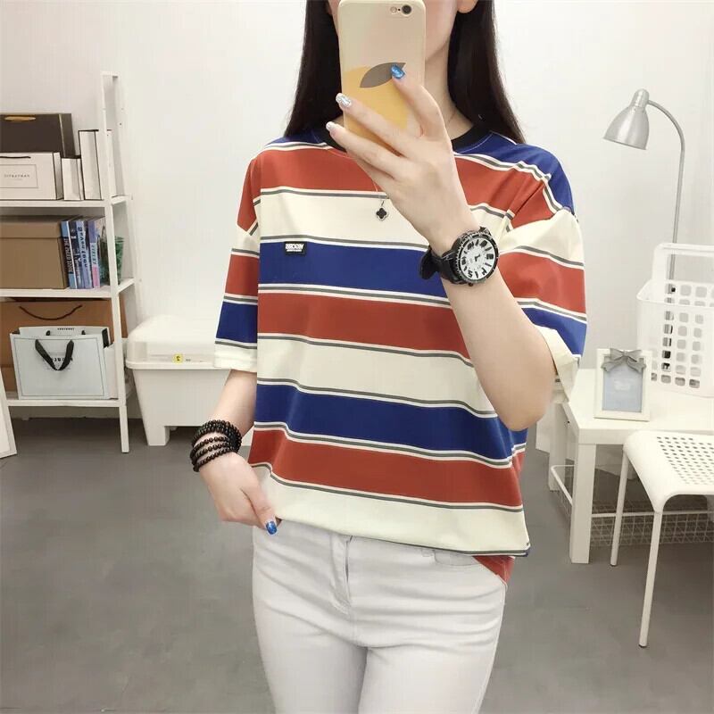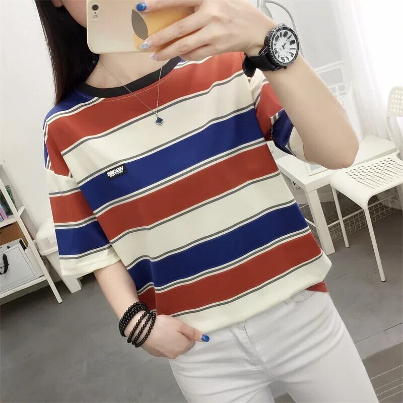 2024 夏ストライププルオーバー Tシャツルーズ半袖 Tシャツトップストリートベース黒 Tシャツトップス ショート ブラック ハーフスリーブ サマー 夏物