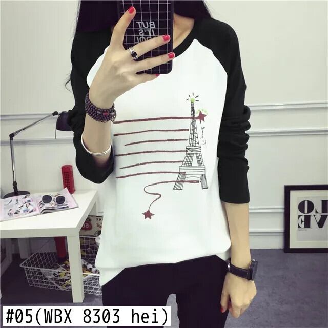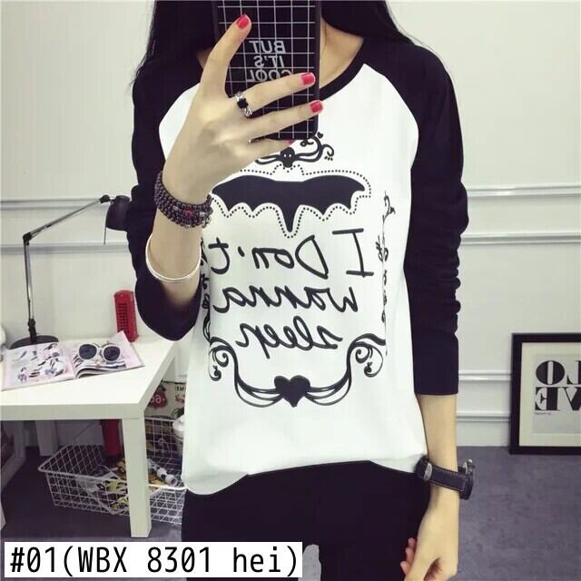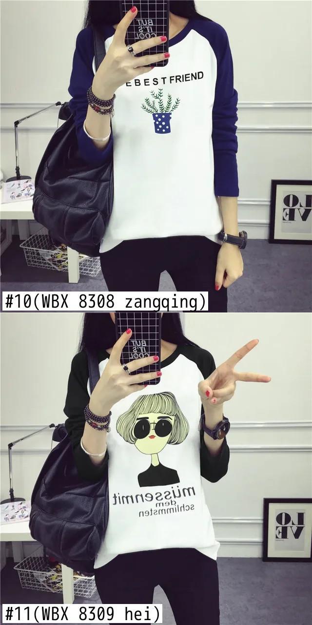 長袖パッチワーク tシャツ春秋漫画プリント Tシャツルーズ若い gril アウター黒トップス学生 ロング ブラック スプリング 春物 オータム 秋物