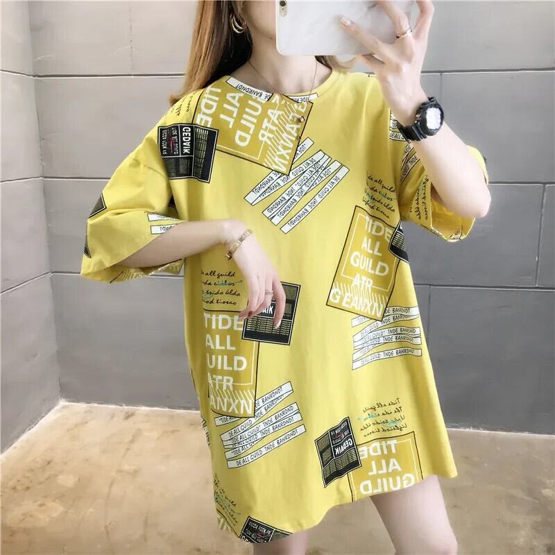 夏レタープリント半袖 Tシャツ韓国グラフィック y2k トップスロング Tシャツ特大原宿友人 ショート ハーフスリーブ かわいい サマー 夏物