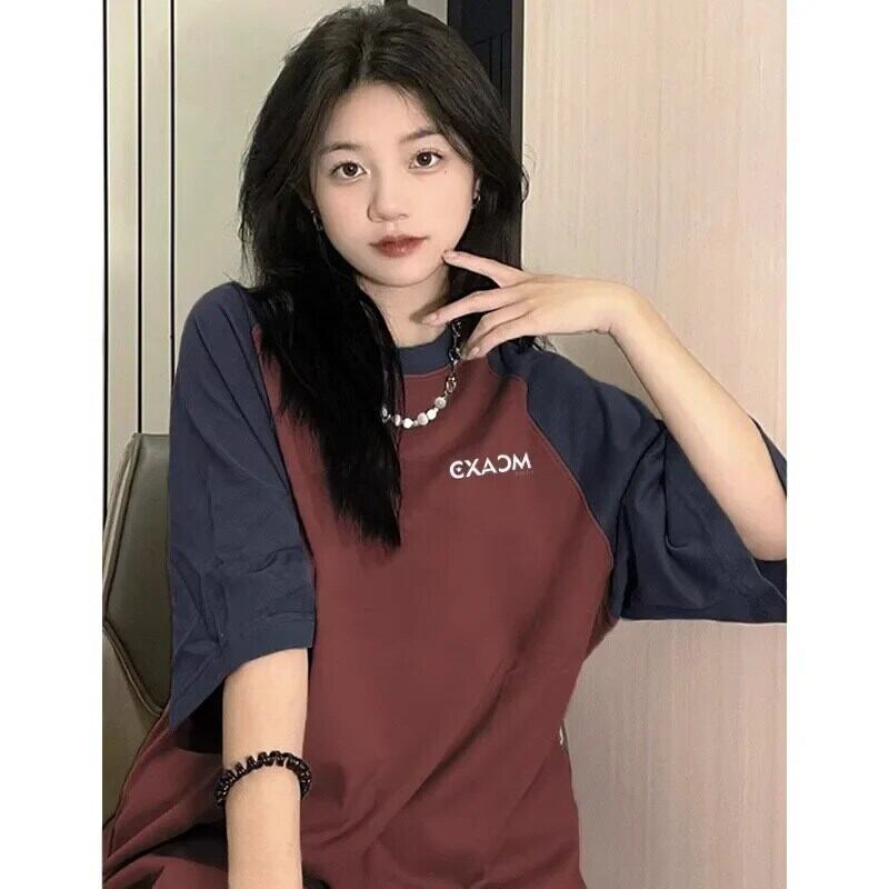 韓国スタイルカラーブロック y2k トップゴス Tシャツ tシャツ 2024 夏カジュアルルーズレタープリント Tシャツ原宿 かわいい サマー 夏物