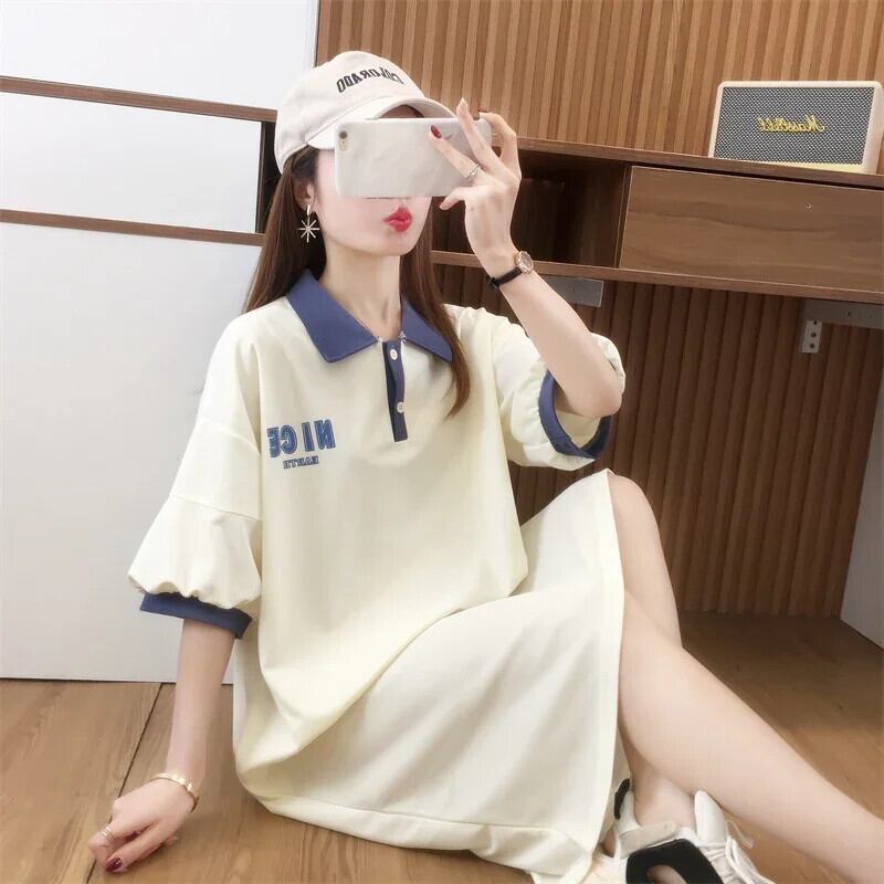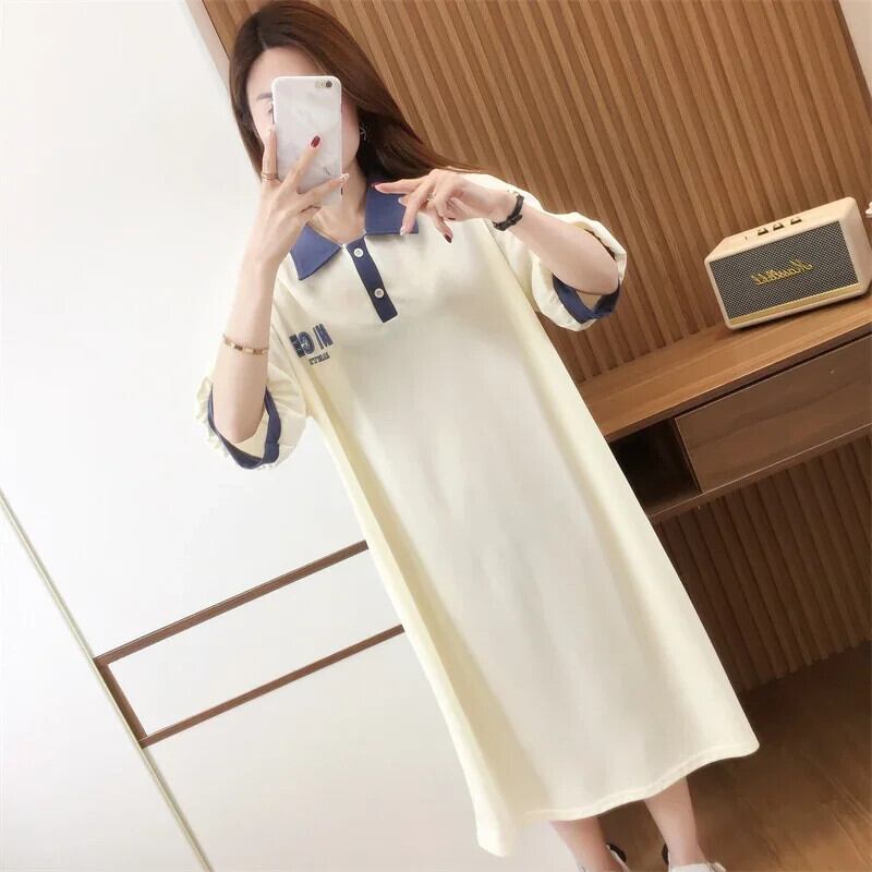 原宿特大ロングドレス韓国レタープリントカジュアルドレスルーズ半袖綿夏 Y2K マキシサンドレスホーム ショート コットン ハーフスリーブ かわいい サマー 夏物