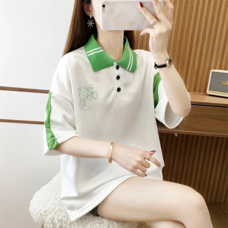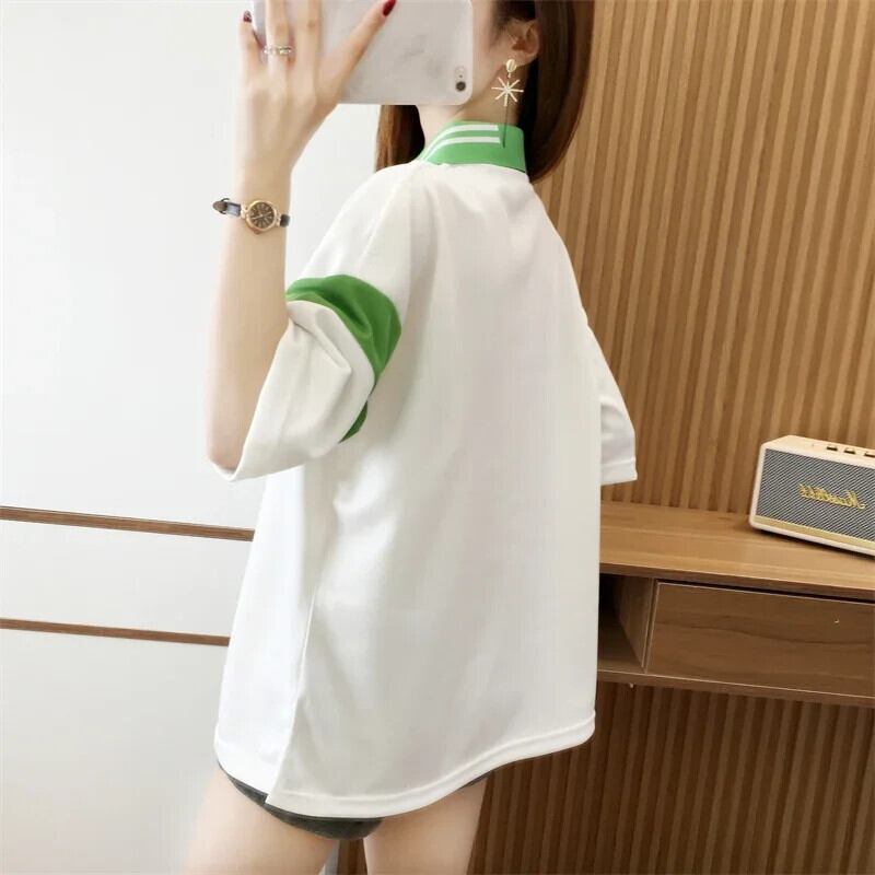 原宿夏綿 tシャツファッション韓国スタイルカラーブロック Tシャツ半袖ラウンドネック学生白 y2k トップス ショート ホワイト コットン ハーフスリーブ かわいい サマー 夏物 Oネック