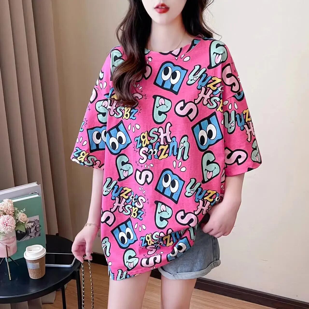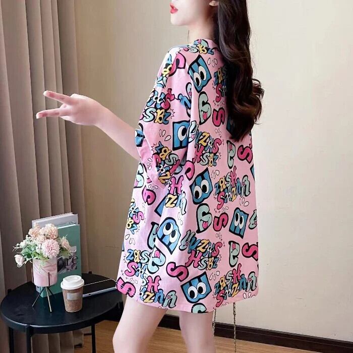 韓国おかしいレタープリントグラフィックトップスロング Tシャツ夏特大 Tシャツ原宿 tシャツストリート かわいい サマー 夏物