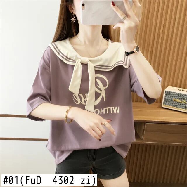 原宿夏綿ルーズ tシャツ韓国スタイルレタープリント Tシャツ半袖セーラー襟若い y2k トップス ショート コットン ハーフスリーブ かわいい サマー 夏物