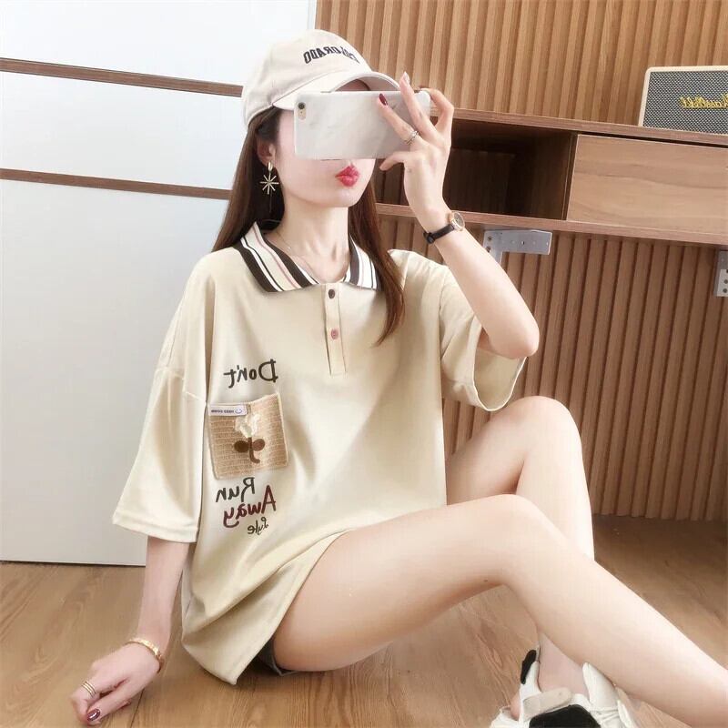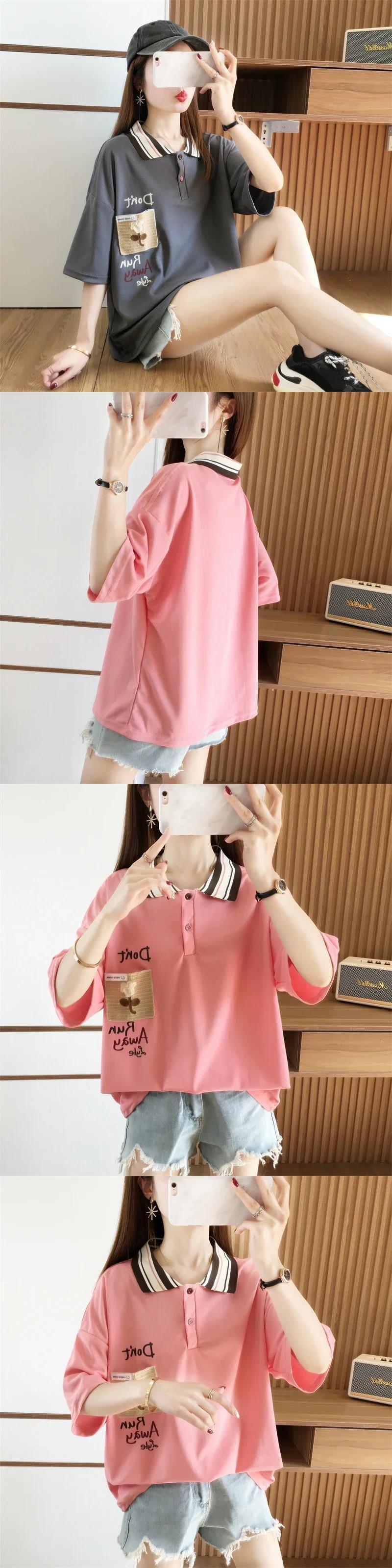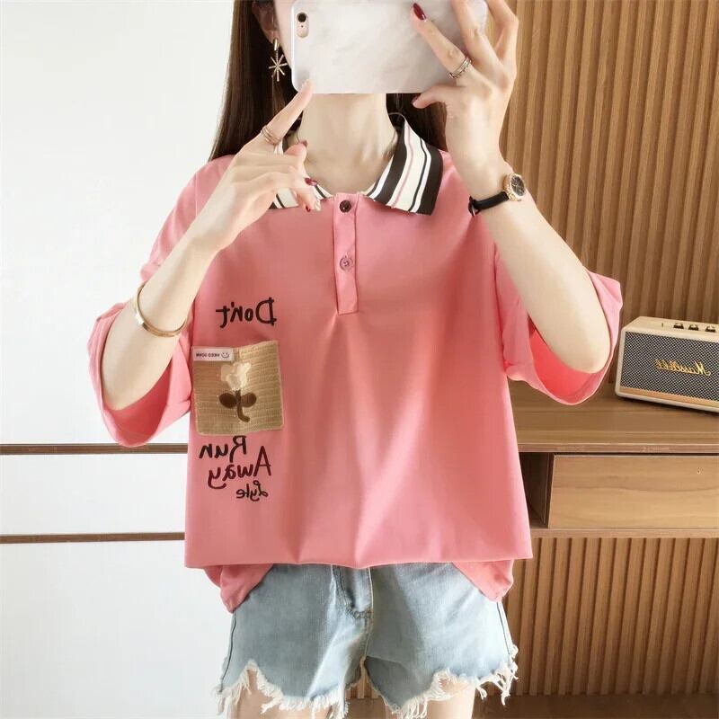 2024 夏綿ルース tシャツ韓国レタープリント Tシャツ原宿半袖ターンダウン襟若い y2k トップス ショート コットン ハーフスリーブ かわいい サマー 夏物