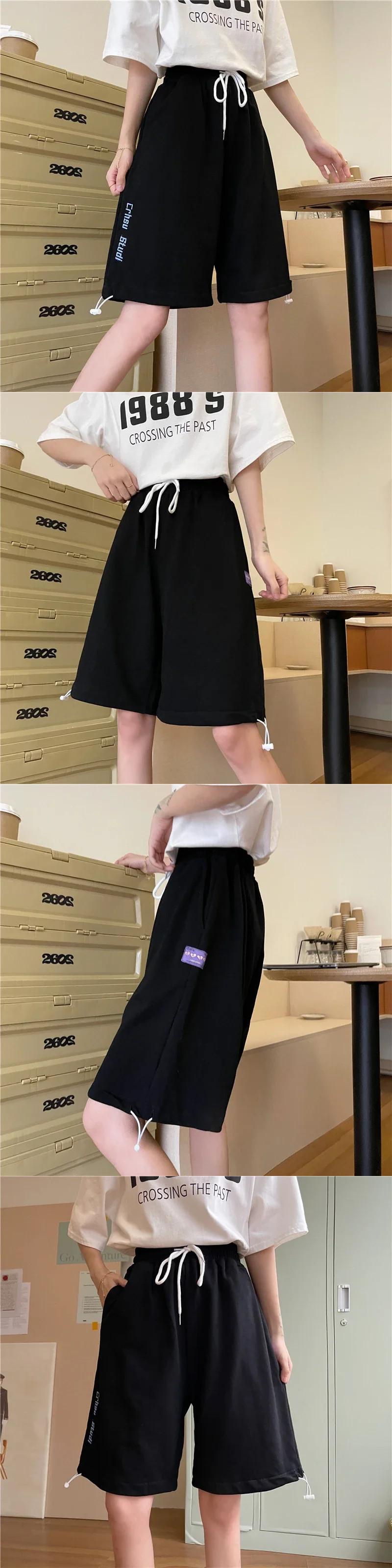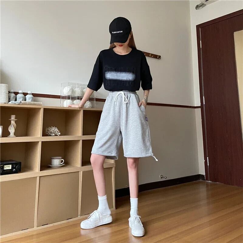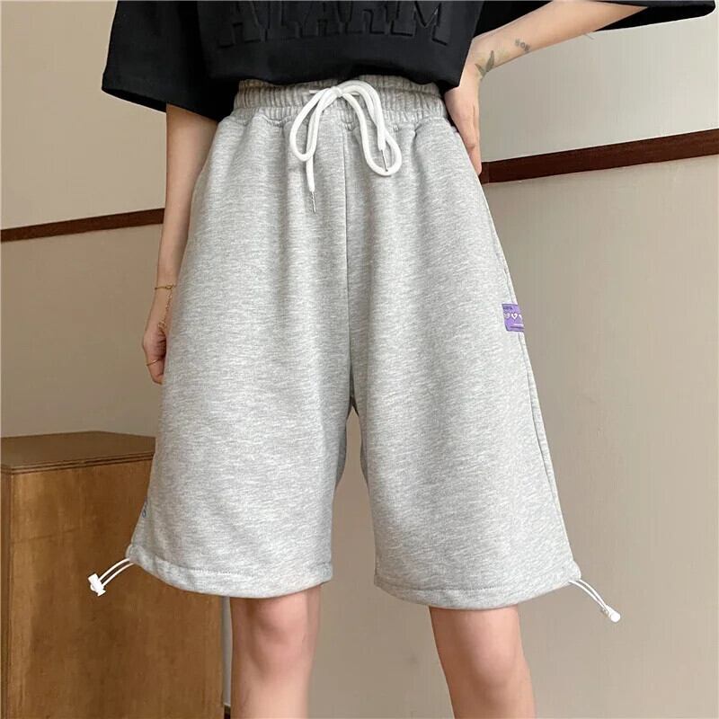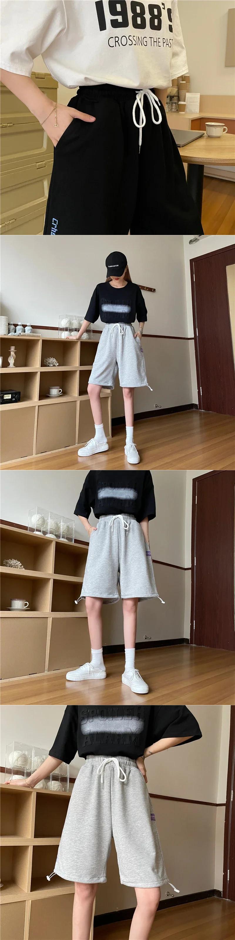 弾性ウエストスポーツショーツ巾着ショーツ夏ストリートルーズワイドレッグショーツ Bf カップルスウェットショーツ エラスティック 伸縮 サマー 夏物 ブルマー ワイドパンツ
