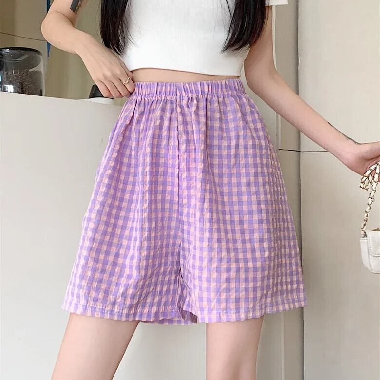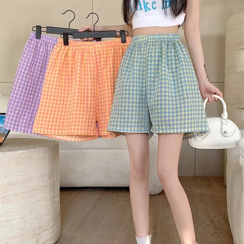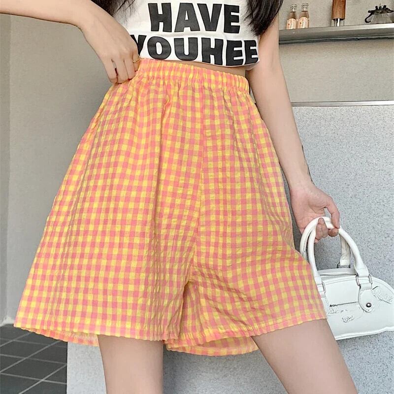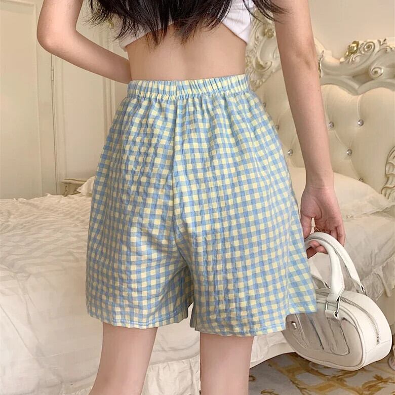 夏ルーズハイウエストルーズ y2k スウェットパンツビーチスタイルショーツソフトチェック柄生き抜くスポーツショーツ ハイウェスト サマー 夏物 ブルマー