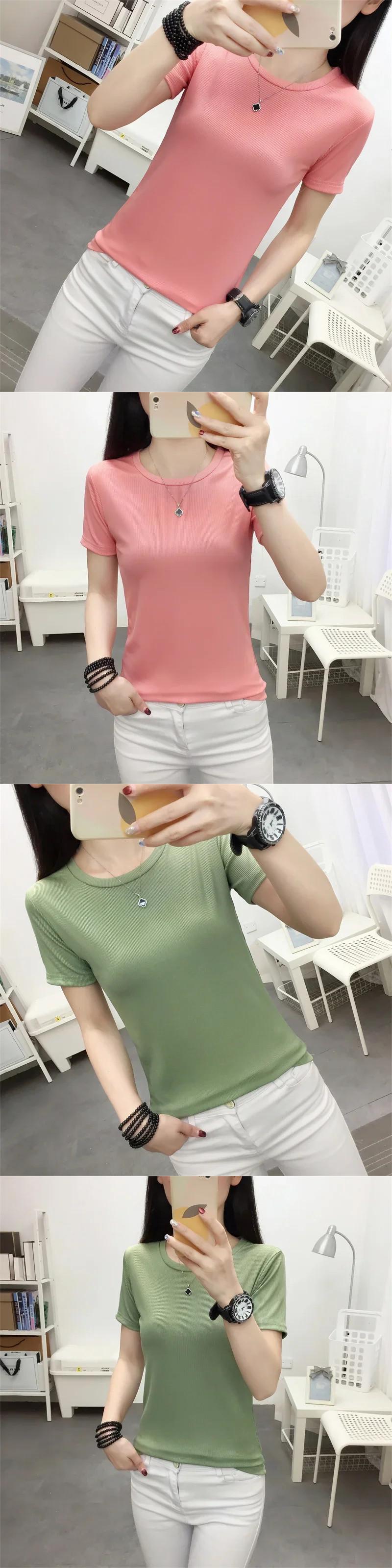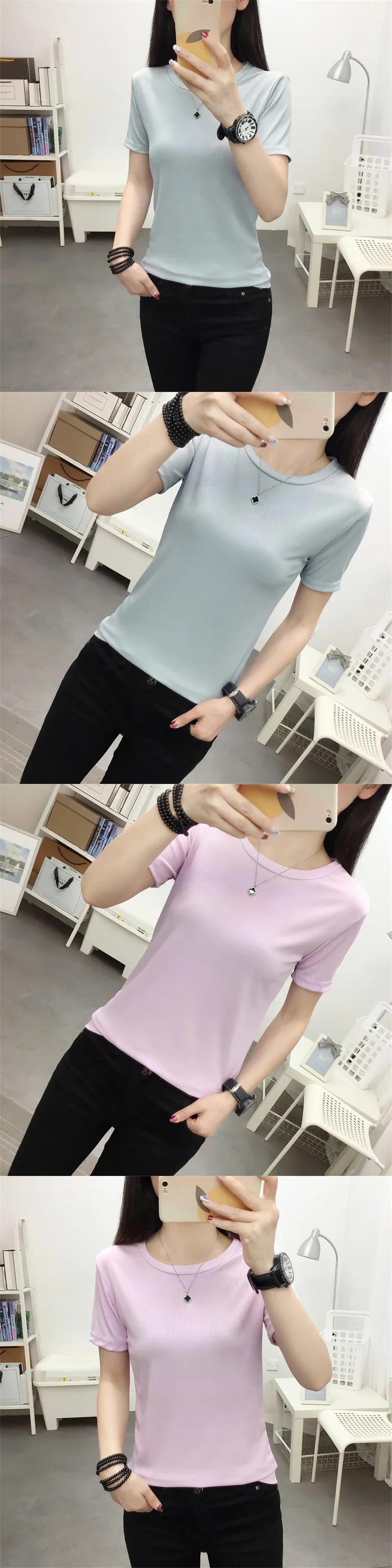 夏若いスリムベーシック Tシャツ原宿シンプル無地トップス半袖ニット Tシャツ ショート ハーフスリーブ かわいい サマー 夏物 ソリッドカラー