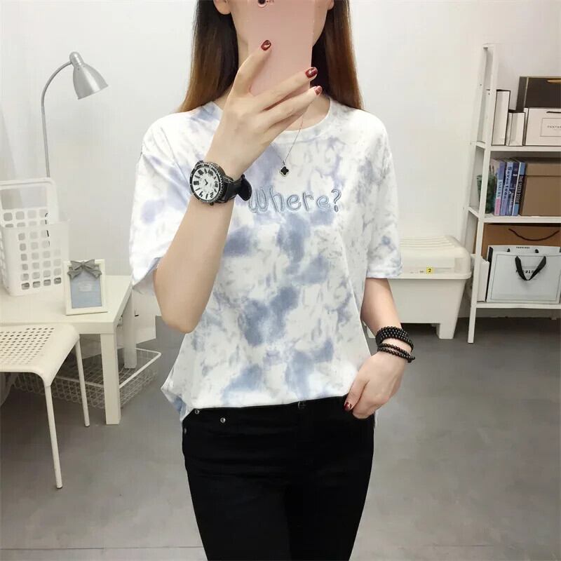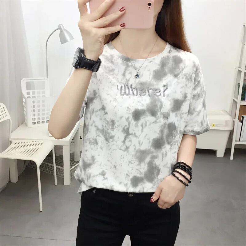 夏手紙刺繍タイダイプルオーバー Tシャツ韓国ルーズ半袖 Tシャツ y2k トップスストリート ショート ハーフスリーブ サマー 夏物