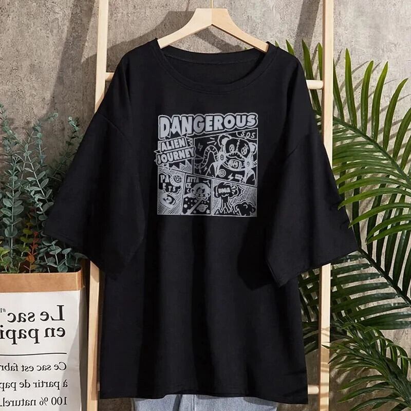夏漫画プリント純粋綿 Tシャツユニセックスストリートカジュアル tシャツ原宿特大半袖 y2k トップス ショート コットン ハーフスリーブ かわいい サマー 夏物 ピュア