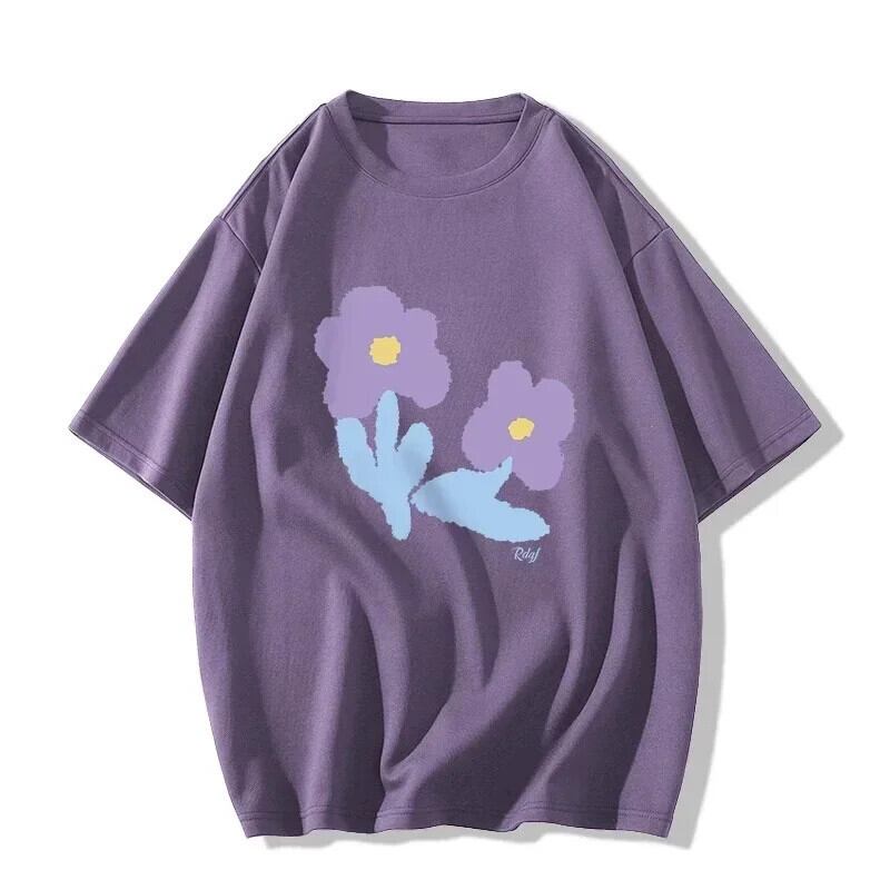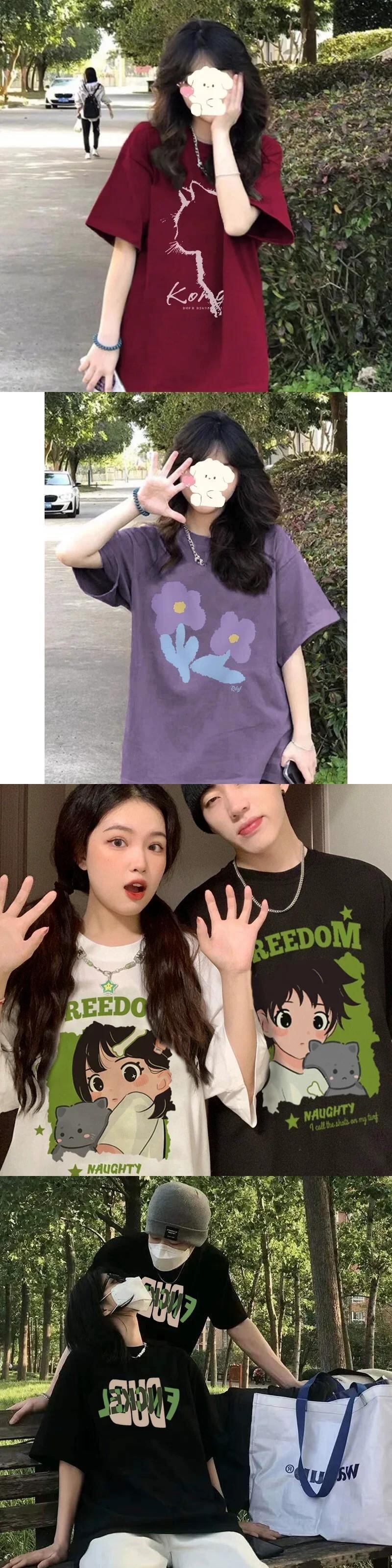 原宿かわいい漫画プリントピンク y2k トップス夏カジュアル特大 tシャツ純粋綿半袖 Tシャツストリート ショート コットン ハーフスリーブ 大人ガーリー サマー 夏物 ピュア