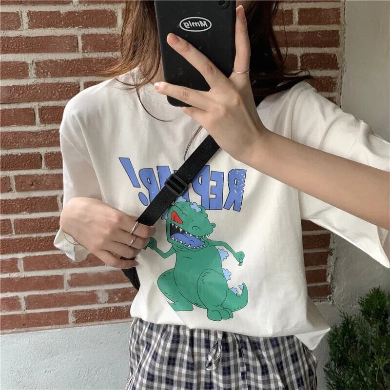 夏特大 Tシャツ純粋綿漫画プリント Tシャツ半袖 Tシャツ白 y2k トップスストリート ショート ホワイト コットン ハーフスリーブ サマー 夏物 ピュア