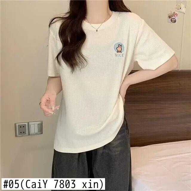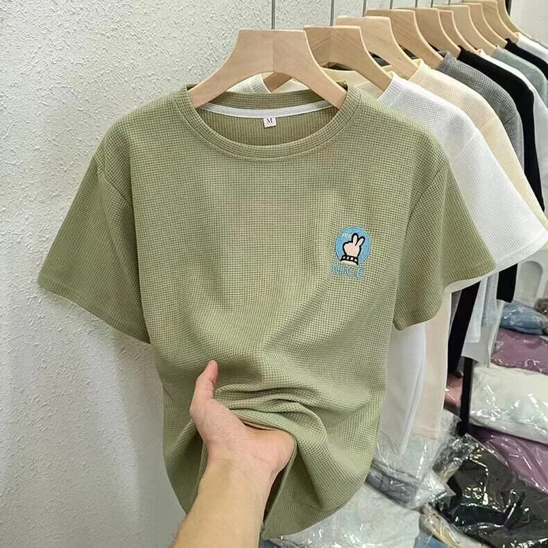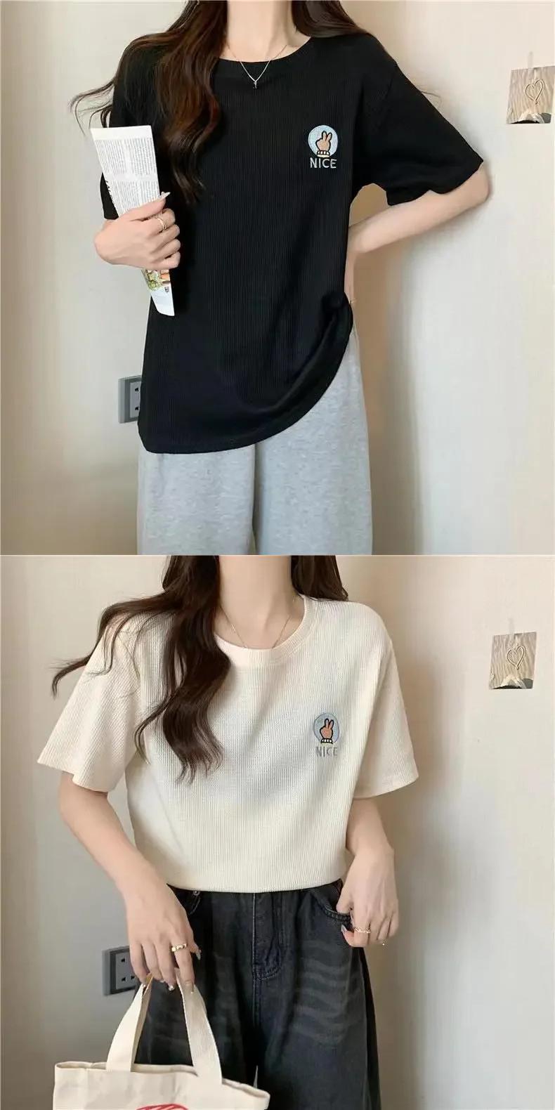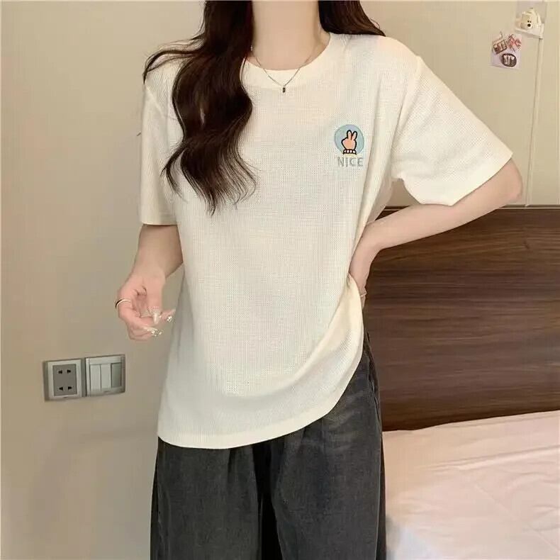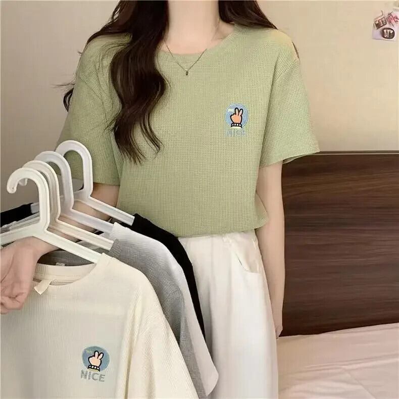原宿ルースワッフル Tシャツ 2024 夏 Tシャツ漫画刺繍 Tシャツトップストリート かわいい サマー 夏物