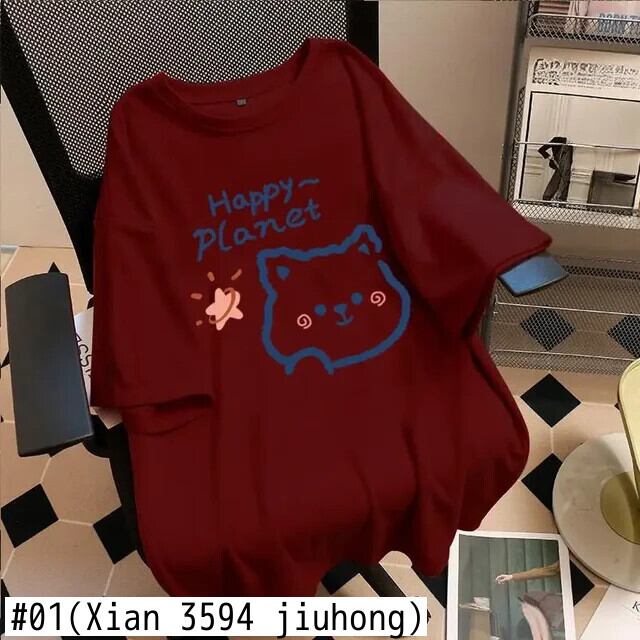 原宿純粋綿特大 Tシャツ夏おかしい漫画グラフィックプリント Tシャツ Y2k トップス コットン かわいい サマー 夏物 ピュア