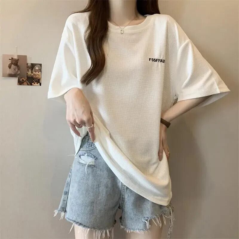 原宿ルースオールマッチワッフル Tシャツ夏 Tシャツ文字刺繍 Tシャツストリート かわいい サマー 夏物