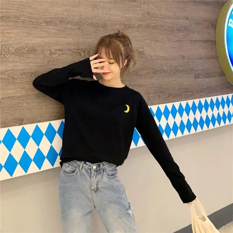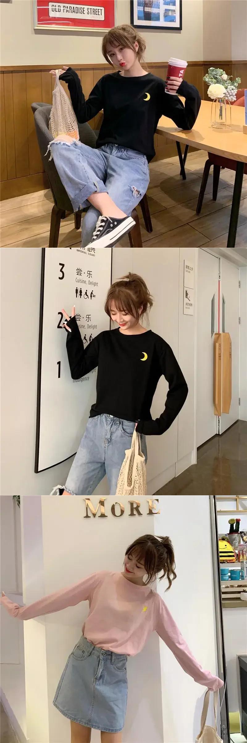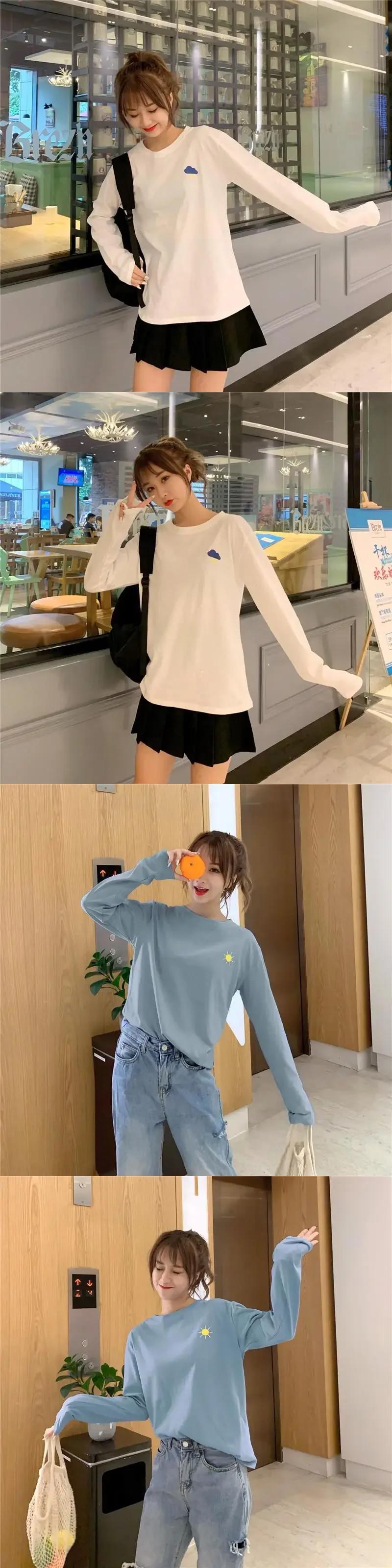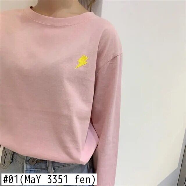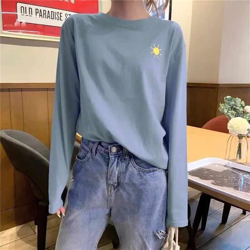 春秋長袖 O ネック Tシャツ原宿おかしい刺繍 Tシャツルーズ Tシャツ Y2k トップスストリート ロング かわいい スプリング 春物 オータム 秋物 Oネック