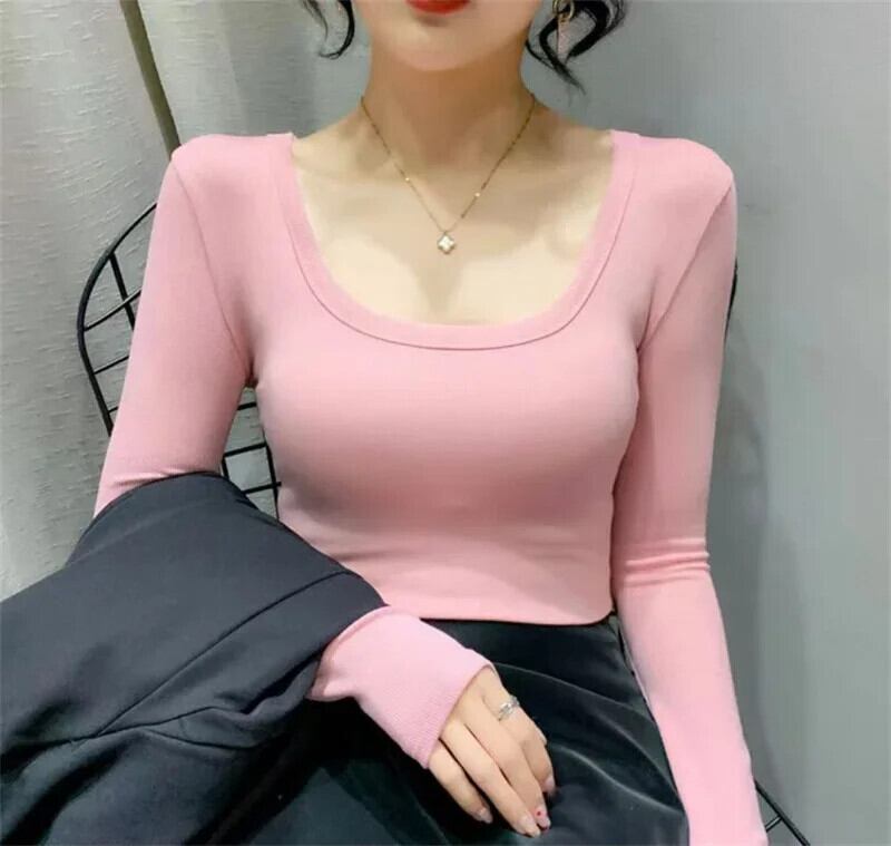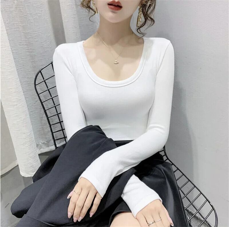 秋冬因果ソリッドセクシーディープ O-enck トップスプルオーバーベース Tシャツ原宿長袖スリム Tシャツストリート Tシャツ ロング かわいい オータム 秋物 ウィンター 冬物 ソリッドカラー