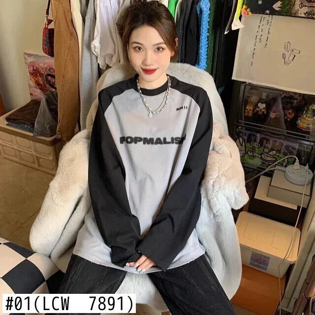 原宿ヴィンテージレタープリント Tシャツ春秋特大 tシャツプルオーバーシャツ長袖 y2k トップスユニセックスストリート ロング かわいい スプリング 春物 オータム 秋物 ビンテージ