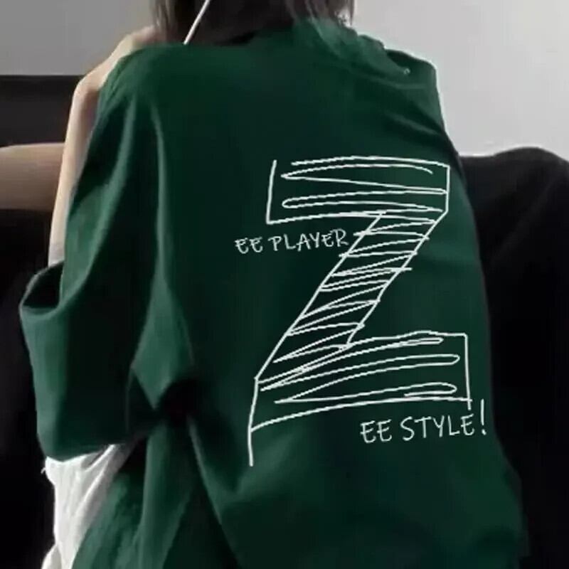 原宿夏 Y2k Tシャツ特大グラフィック Tシャツ純粋綿レタープリント Tシャツヒップスタートップスグリーンストリート コットン かわいい サマー 夏物 ピュア