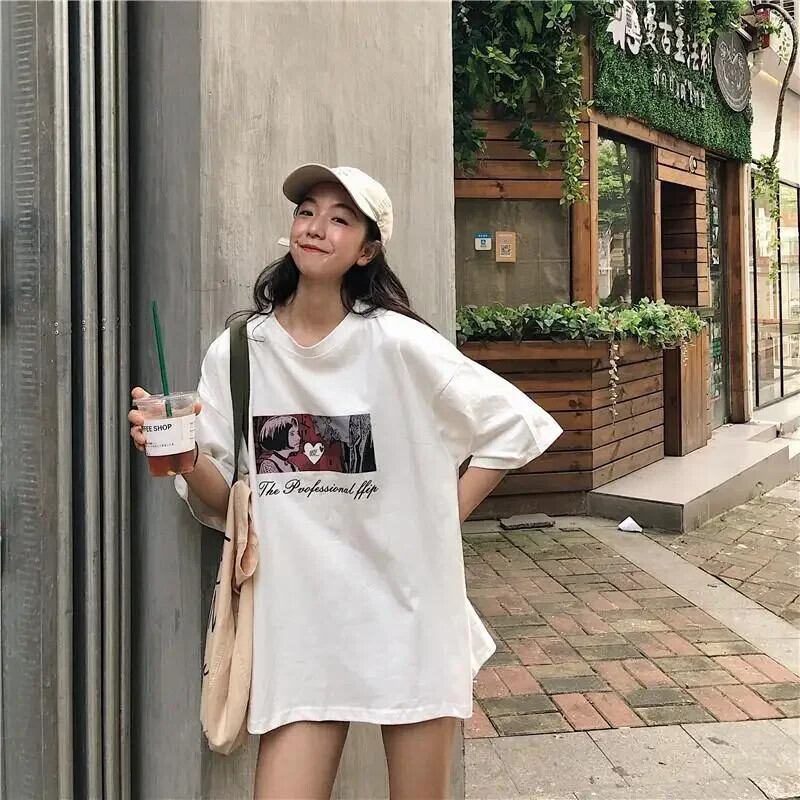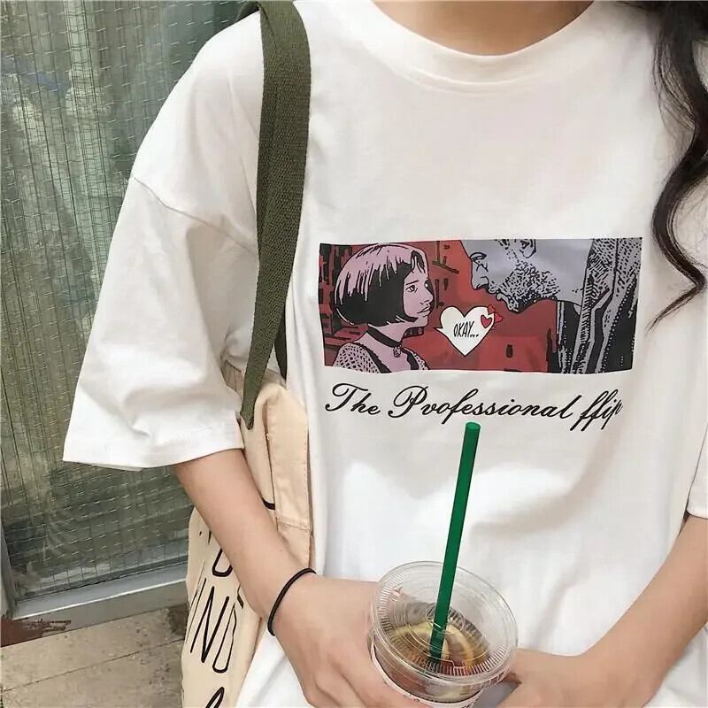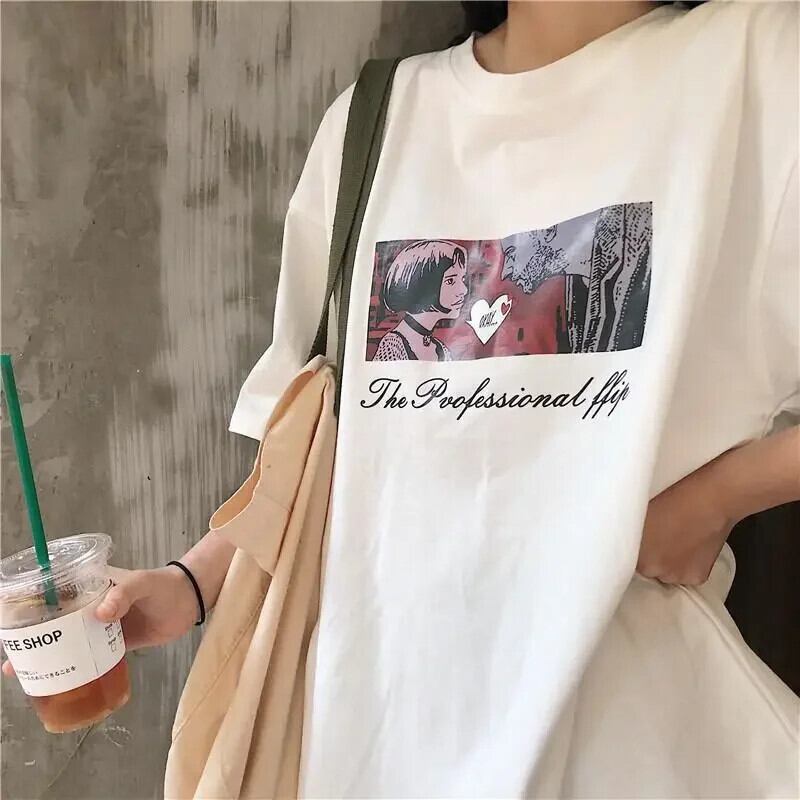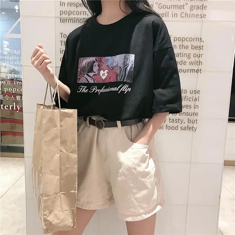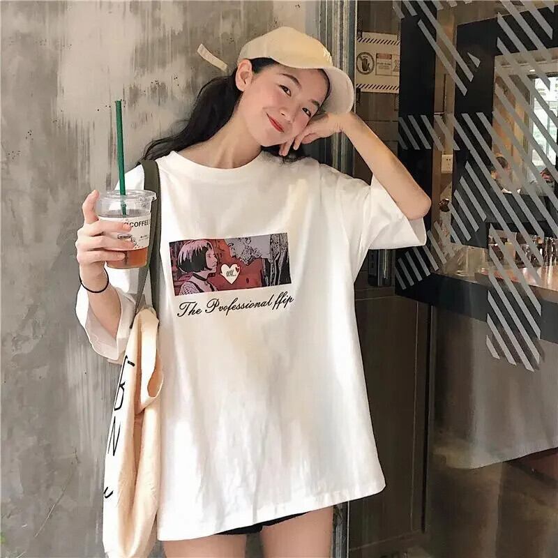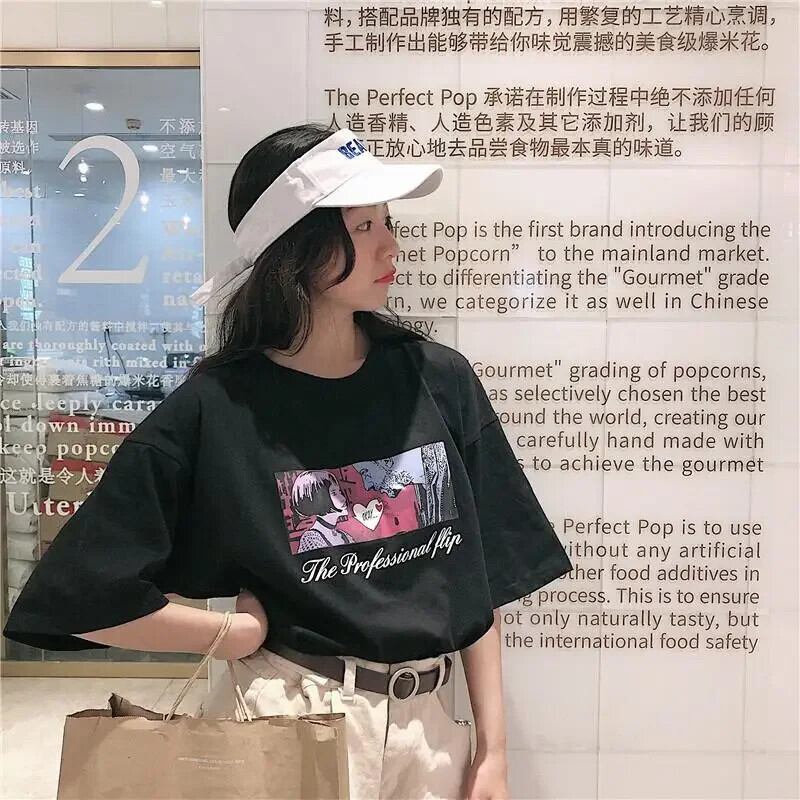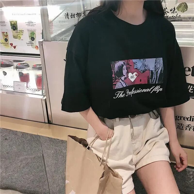 フラウ Tシャツ sommer lässig los Frauen Tシャツ koreanischen lustigen Cartoon-Druck y2k トップス 原宿ゴスヴァイス シュヴァルツ Tシャツ ストリート かわいい