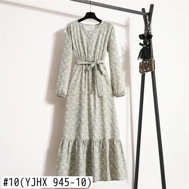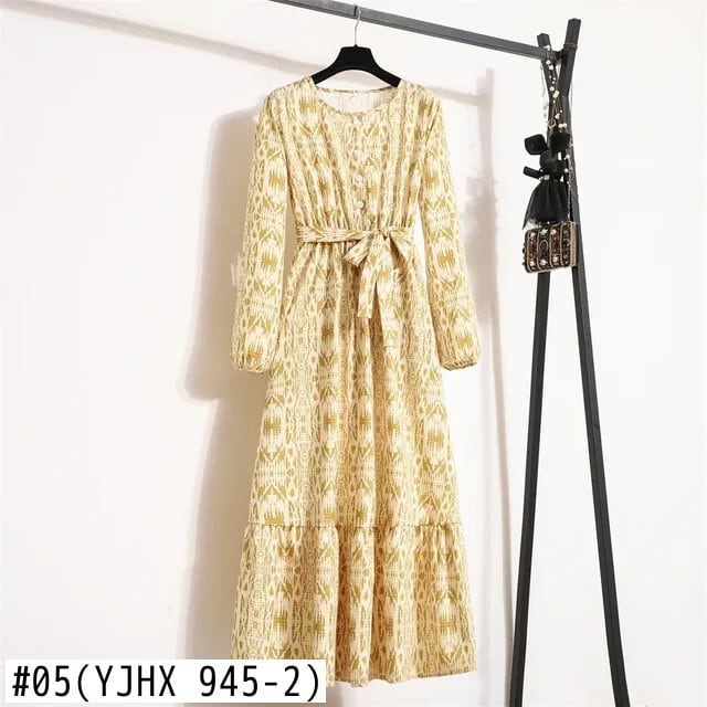 Blumen gedruckt volle Ärmel A-Linie lange Maxi kleider Herbst Frühling neue Frauen Chiffon Kleider O-Ausschnitt Vestidos weiblich シフォン