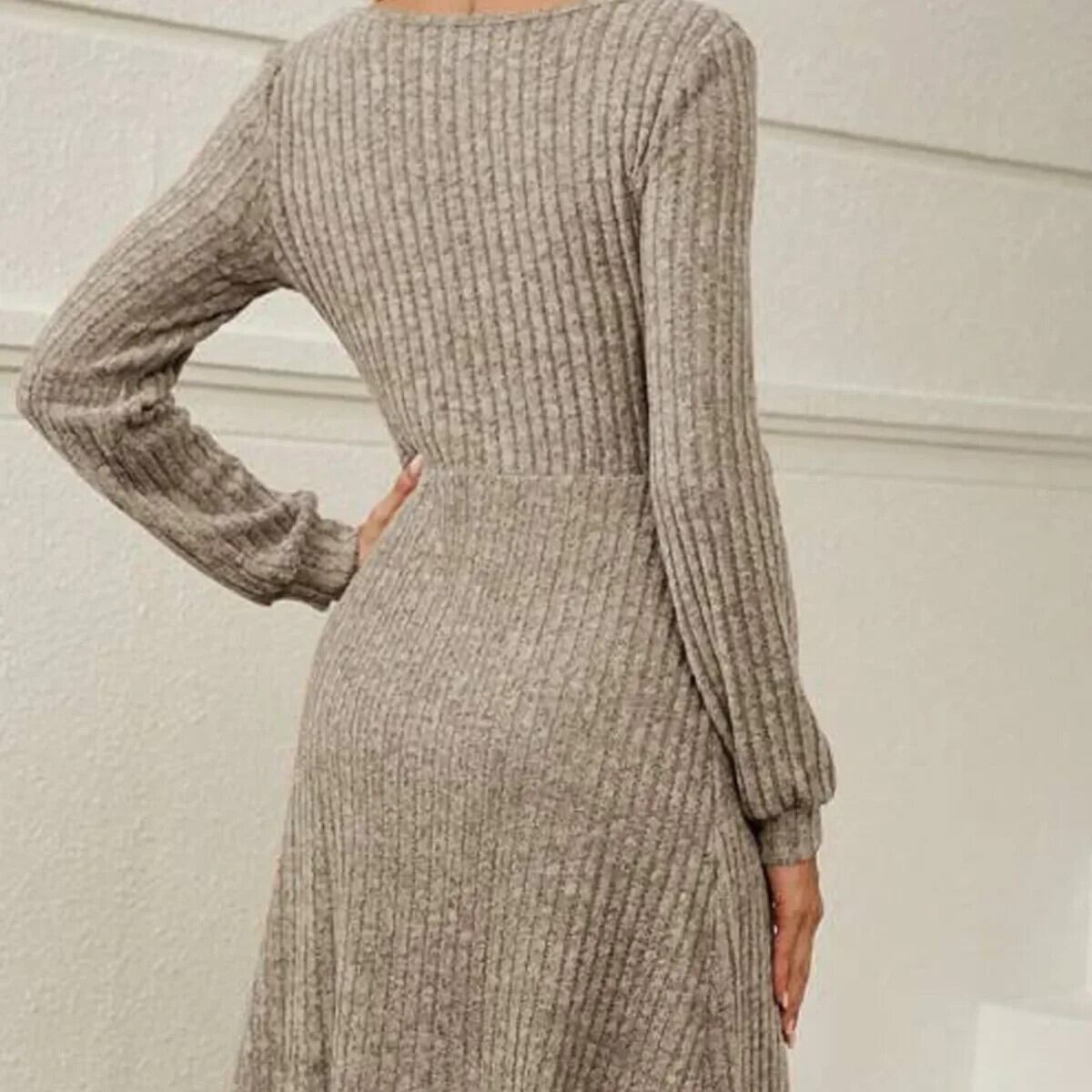 Herbst Winterkleider für Frauenquadratischer Kragen A-Linie Minirock grauer Boden mit Mantel Strickkleid lang ärmel iges vielseitiges Kleid ウィンター 冬物
